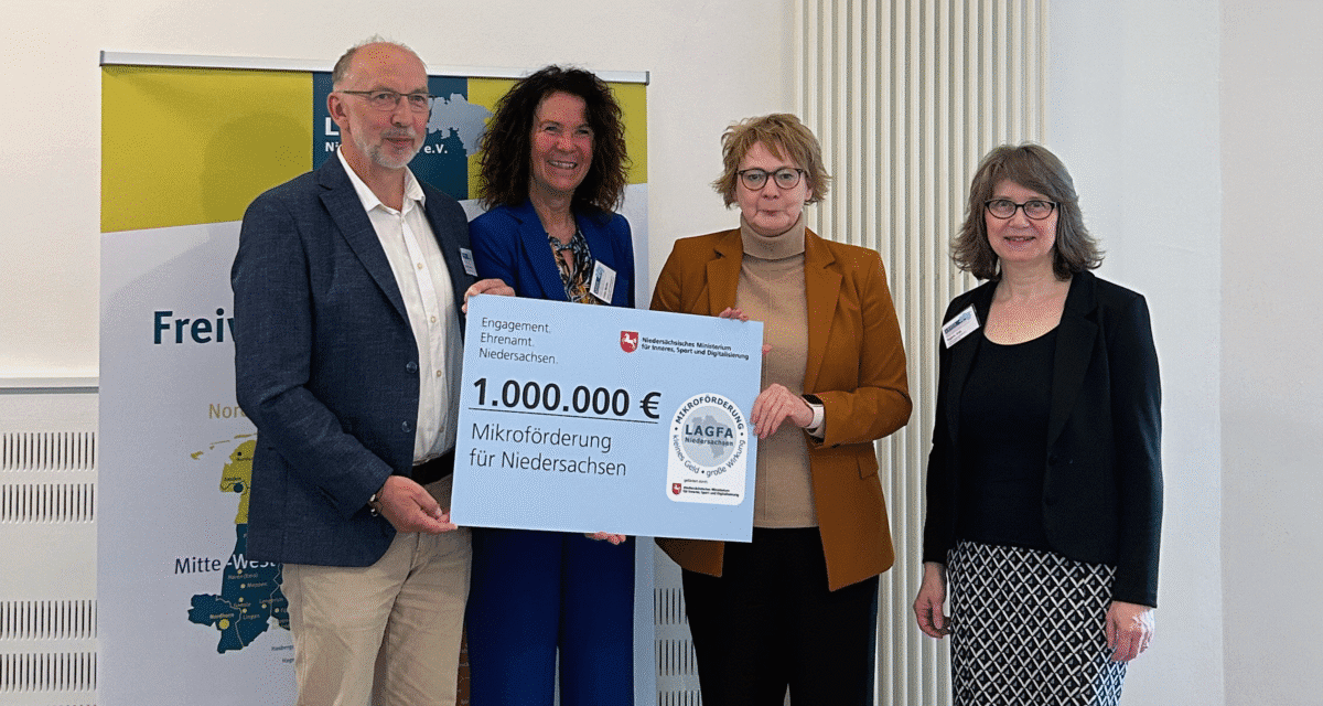 Die Niedersächsische Ministerin für Inneres, Sport und Digitalisierung, Daniela Behrens, hat heute (26. Februar 2026) in Hannover offiziell den Startschuss für die Mikroförderung 2026 gegeben und einen Förderscheck über eine Million Euro an die Landesarbeitsgemeinschaft der Freiwilligenagenturen Niedersachsen e. V. (LAGFA) überreicht.