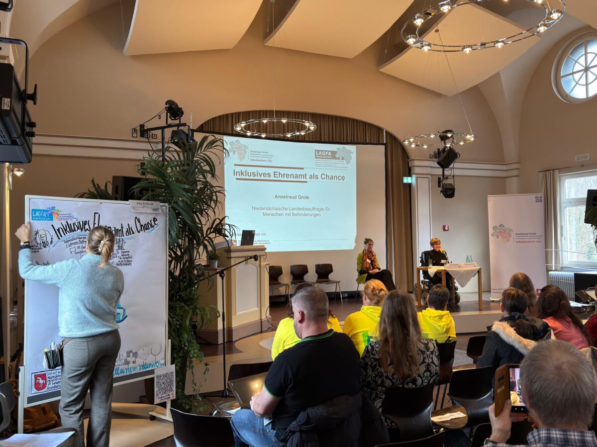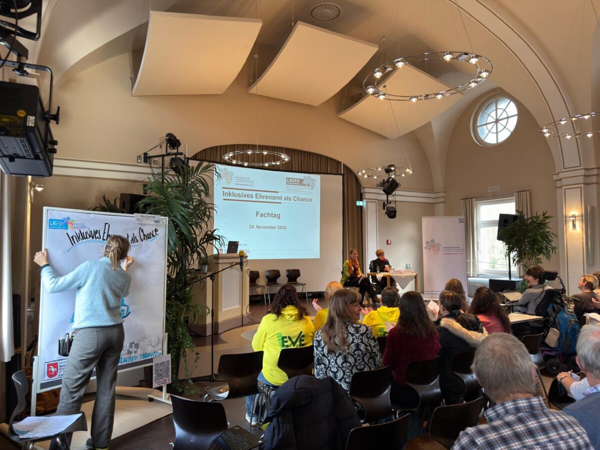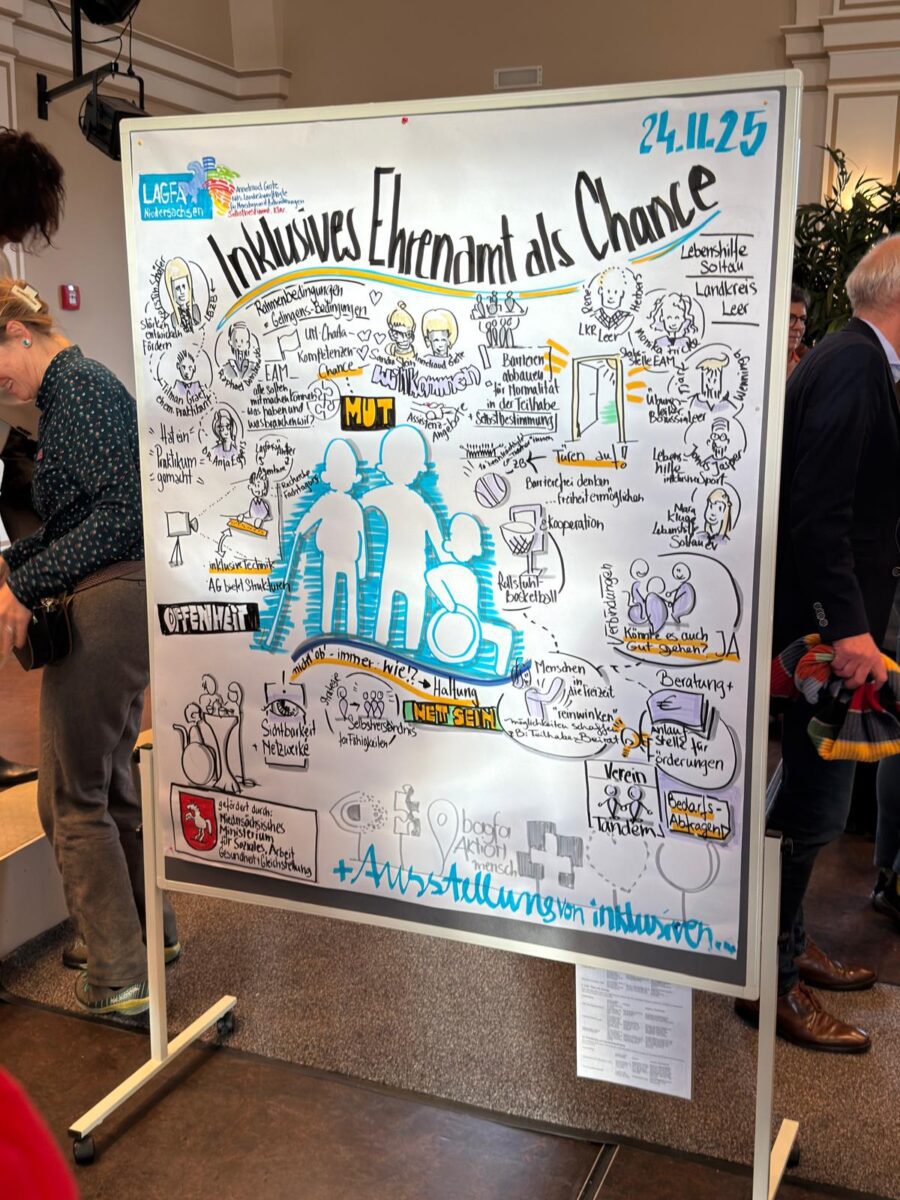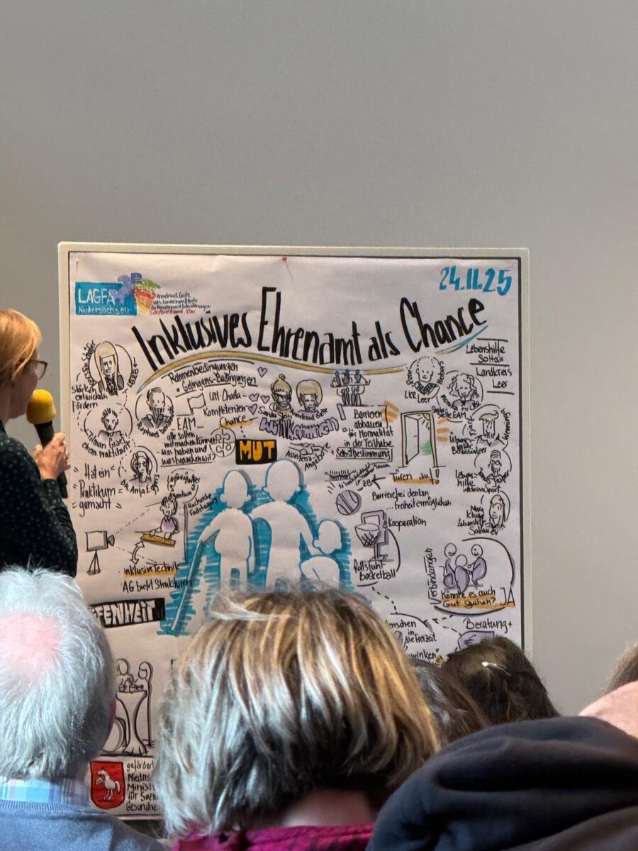 Inklusives Ehrenamt in Niedersachsen gewinnt zunehmend an Bedeutung. Beim Fachtag „Inklusives Ehrenamt als Chance“ kamen über 130 Teilnehmende aus Freiwilligenagenturen, Vereinen, Verbänden, Verwaltungen und Unternehmen zusammen, um gemeinsam Wege zu mehr Teilhabe im Engagement zu diskutieren. Die wichtigsten Erkenntnisse, Impulse und Visualisierungen stellen wir hier vor.