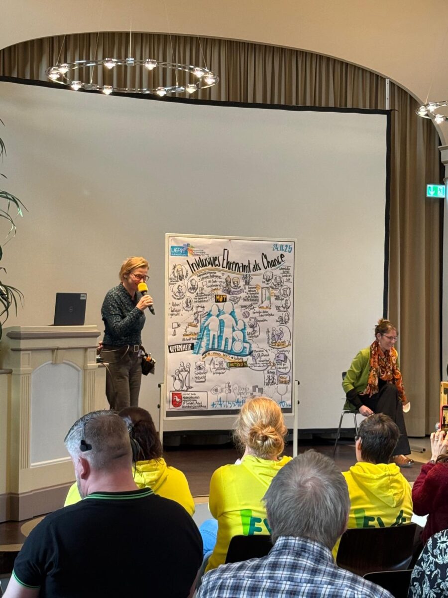 Ziel der Veranstaltung war es, zu zeigen, wie Engagement für Menschen mit und ohne Behinderungen gelingen kann. Praxisberichte verdeutlichten, welche Herausforderungen bestehen, aber auch, welche Gelingensbedingungen Teilhabe im Ehrenamt möglich machen.